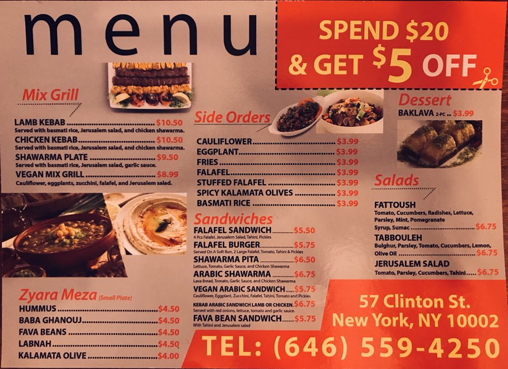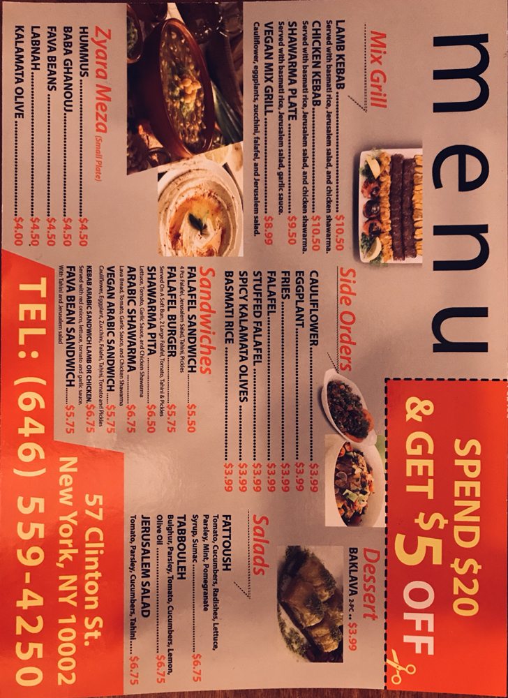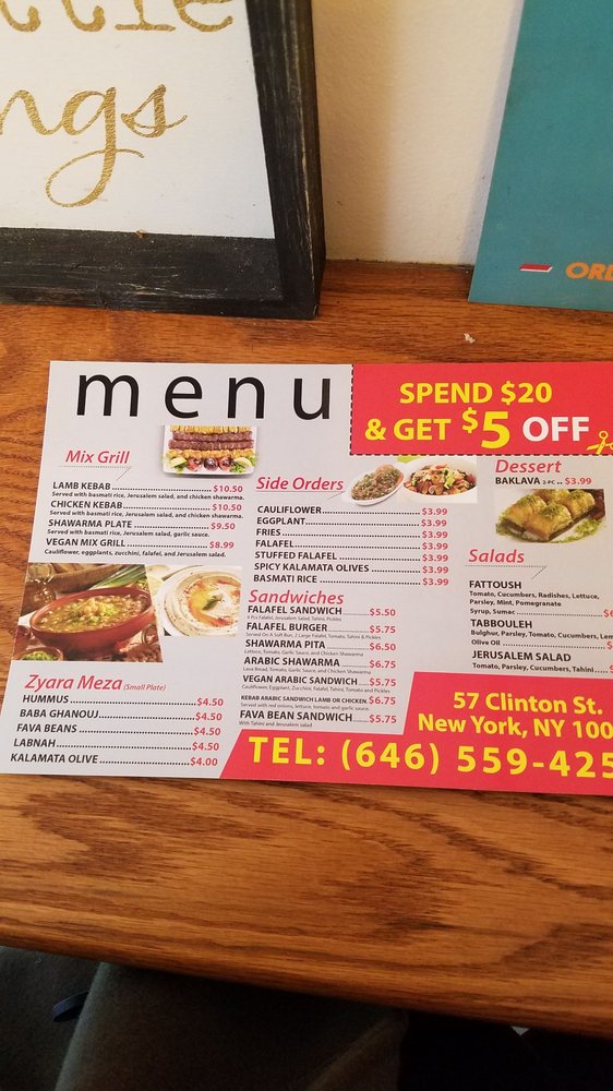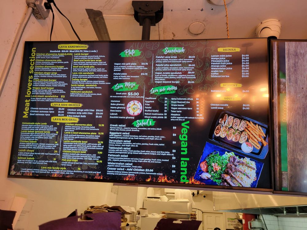 Introducing the menu at Lava Shawarma, a Middle Eastern gem located at 57 Clinton St New York, NY. This trendy yet intimate spot offers a variety of vegan and vegetarian options, making it a great choice for all dietary preferences. From classic dishes like Baba Ghanouj and Falafel to unique creations like Mama Ghabnouj and Stuffed Falafel, there is something for everyone to enjoy. Don't miss out on their flavorful salads such as Fatoush Salad and Tabboule Salad, bursting with fresh ingredients and drizzled with delicious sauces. The menu also features a wide selection of side orders, perfect for sharing or as a light snack. With excellent service, a classy ambiance, and a range of options for any occasion, Lava Shawarma is a must-visit destination for Middle Eastern cuisine lovers in the Big Apple.